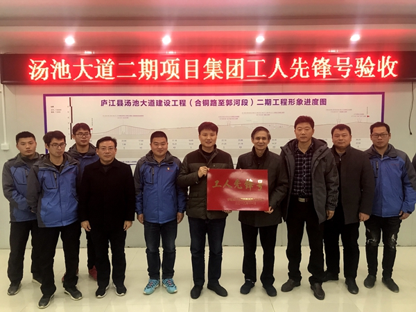 12月27日,集團(tuán)工會調(diào)研專員吳曉伍在公司工會主席楊建強的陪同下,對湯池大道項目“工人先鋒號”創(chuàng)建活動進(jìn)行考核、驗收,并現(xiàn)場授牌。