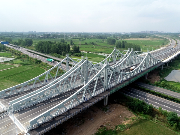 該項目是滁州市與來安縣的連接線,道路標準定位為城市快速路。自項目建設(shè)以來,項目部緊盯時間節(jié)點目標,嚴控施工質(zhì)量,精心部署推進施工。過程中,項目部科學調(diào)度,提前謀劃,有效克服了雨季洪災(zāi)、新冠肺炎疫情等困難帶來的不利影響。在不中斷高速交通的情況下,成功運用縱向前移結(jié)合橫向平移多點牽引式頂推施工技術(shù),順利完成了鋼桁架梁安裝,積累了頂推施工的寶貴經(jīng)驗。