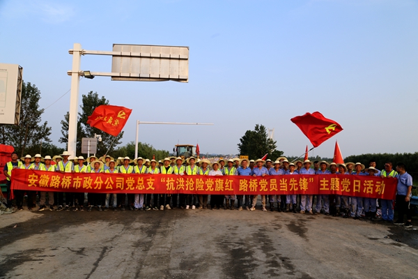 在這場(chǎng)抗洪搶險(xiǎn)突擊中,市政分公司黨總支現(xiàn)場(chǎng)組織開(kāi)展了一次主題為“抗洪搶險(xiǎn)黨旗紅 路橋黨員當(dāng)先鋒”的黨日活動(dòng),號(hào)召所屬黨支部和廣大黨員堅(jiān)守陣地,把黨組織的戰(zhàn)斗堡壘建在抗洪搶險(xiǎn)的最前沿。