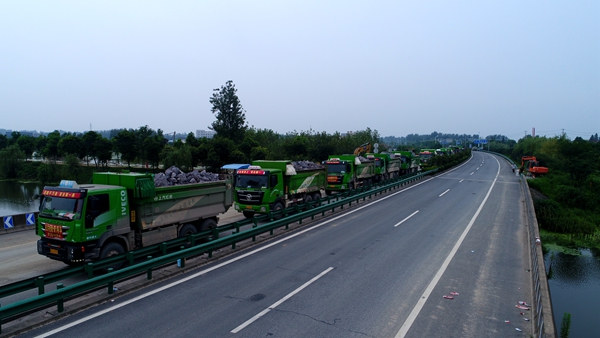 廬江縣同大鎮(zhèn)小南河存在較大的防汛壓力,河堤經(jīng)過(guò)長(zhǎng)期的高水位浸泡,基礎(chǔ)發(fā)軟,如不及時(shí)加固搶修,將對(duì)同大鎮(zhèn)魏蕩村土地及住房造成威脅。得知這一險(xiǎn)情時(shí),安徽路橋徽州大道項(xiàng)目緊急投入大小挖機(jī)12臺(tái)、運(yùn)輸車輛90多輛,挖掘運(yùn)送砂石8000多方,經(jīng)過(guò)一晝夜的奮戰(zhàn),高質(zhì)量高效率的完成了加固搶修任務(wù),有效保障了同大鎮(zhèn)魏蕩村村民的生命財(cái)產(chǎn)安全。