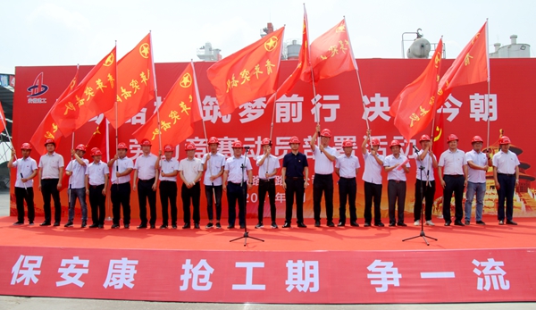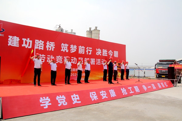 路面公司總經(jīng)理薛斌作動(dòng)員講話,副總經(jīng)理陳智宣讀了勞動(dòng)競賽活動(dòng)方案,項(xiàng)目經(jīng)理代表、黨員代表、青年代表和施工班組代表分別作了表態(tài)發(fā)言?,F(xiàn)場還進(jìn)行了“黨員先鋒隊(duì)”、“工人先鋒號(hào)”、“青年突擊隊(duì)”授旗。