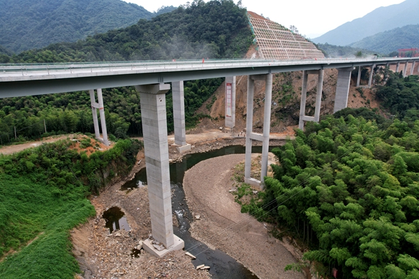 真正敢于挑戰(zhàn)的建設者,需要非凡的毅力和勇氣。位于標頭的徽水河大橋進場時,每一臺機械設備都“寸步難行”,每一米道路修筑都要用爆破方式挖掉硬石。他們歷經(jīng)雨水、烈日的輪流考驗,立起了一排排筆直的墩柱,架起了一片片堅實的梁板,將最艱難的1公里鍛造而成。