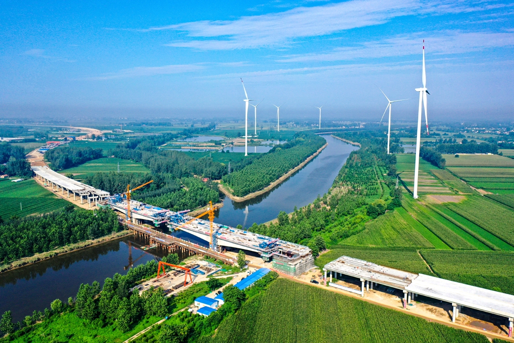 【名媒聚焦】淮北日?qǐng)?bào):徐淮阜高速淮北段沱河特大橋施工正酣