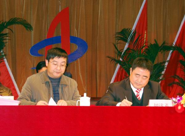 集團公司董事長、總經理胡運成與公司總經理汪衛(wèi)東簽訂2010年生產、經營目標責任書