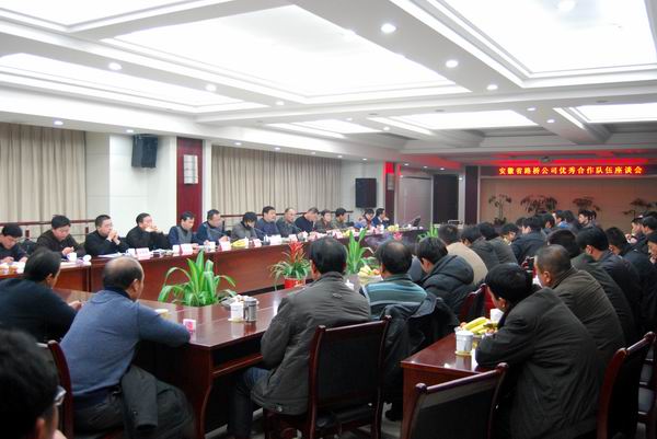 座談會(huì)開始前,會(huì)場(chǎng)播放了公司宣傳片,展示公司二十五年來的發(fā)展歷程。座談會(huì)由副總經(jīng)理盛明宏主持??偨?jīng)理助理傅月斌通報(bào)了公司2010年施工總體情況。公司分管領(lǐng)導(dǎo)、各部門負(fù)責(zé)人、項(xiàng)目經(jīng)理分別作了發(fā)言。黨委書記陳光磊指出合作共贏、共同發(fā)展是公司永久追求的目標(biāo),安徽路橋的業(yè)績也凝聚著合作隊(duì)伍的努力;合作共贏不僅是要經(jīng)濟(jì)利益,更要追求社會(huì)效益;公司各級(jí)對(duì)合作隊(duì)伍的真誠服務(wù)是職責(zé)所在,合作隊(duì)伍認(rèn)真履約、堅(jiān)強(qiáng)給力,就是對(duì)公司工作的最大支持。陳書記還表示目前項(xiàng)目已建立了支部、職工小家、職工書屋等,歡迎合作隊(duì)伍積極參加,享受權(quán)利。