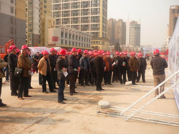 隨后觀摩團一行來到公司會議室召開座談會。會上,項目經(jīng)理李建成用幻燈片形式向觀摩團展示了項目工程概況、工程進度、項目管理及工程重難點、質量控制、安全生產、文明創(chuàng)建、黨員先鋒號創(chuàng)建、農民工學校建設以及企業(yè)文化宣傳等各方面建設情況。