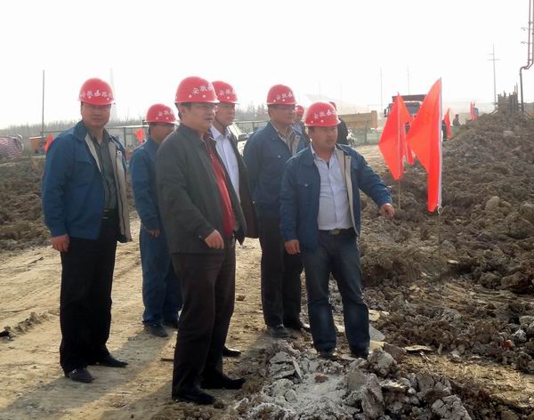 汪總一行首先對環(huán)湖北路項目進行了實地察看。項目經(jīng)理王明禮向汪總一行匯報了項目當前的工作進展情況以及施工中遇到的困難等。汪總、孫總、劉總均對橋梁施工中的難題及高填方軟基路段的施工技術提出了指導性建議,并指出橋梁施工過程中一定要把好質量關安全關,高填方軟基處理一定要合理安排好土方的規(guī)范施工,合理調配機械設備,一定要按照標準化施工程序進行,保證施工質量,切實做好施工中的安全防護工作。
