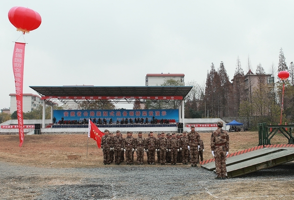 下午,在合肥警備區(qū)教導(dǎo)隊(duì)訓(xùn)練場(chǎng),紅旗招展,彩球飄揚(yáng)。公司從各單位、各項(xiàng)目抽調(diào)的50名隊(duì)員經(jīng)過(guò)為期一周的軍事化訓(xùn)練,精神抖擻、整裝待發(fā)。15:00時(shí),演示活動(dòng)正式開(kāi)始。隨著梅廳長(zhǎng)一聲令下,隊(duì)員們高舉“安徽省公路工程保障大隊(duì)”旗幟,齊喊口號(hào),跑步進(jìn)入現(xiàn)場(chǎng),開(kāi)始架設(shè)。在架設(shè)的同時(shí),進(jìn)行了現(xiàn)場(chǎng)同期聲解說(shuō)。短短30分鐘內(nèi),隊(duì)員們分工明確,技術(shù)熟練,配合默契。在沒(méi)有機(jī)械設(shè)備的情況下,依靠人工肩扛手抬,迅速完成了桁架、橋面板等搭設(shè),將鋼橋推過(guò)河,隨后三輛炮車(chē)緩緩?fù)ㄟ^(guò),進(jìn)行裝備通載檢驗(yàn)。至此,戰(zhàn)備鋼橋架設(shè)演示圓滿完成。演示活動(dòng)結(jié)束后,領(lǐng)導(dǎo)們上橋檢閱,親切地接見(jiàn)、慰問(wèn)了參演隊(duì)員,并合影留戀。