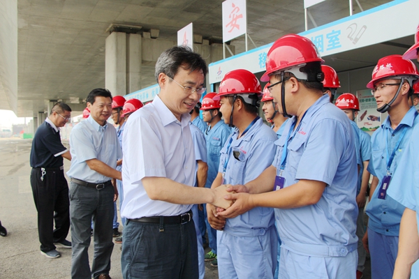 連日以來,高溫酷暑籠罩著江淮大地,但廣大安徽路橋人依然堅守施工一線,揮汗如雨。7月26日上午11時,安徽省住建廳黨組書記、廳長張?zhí)炫?,黨組成員、副廳長吳桂和,副巡視員劉少為一行在集團工會主席徐曉光,公司董事長、黨委書記、總經(jīng)理孫學(xué)軍等有關(guān)人員的陪同下,深入合肥阜陽北路高架項目看望慰問一線建設(shè)者,叮囑項目部做好防暑降溫工作,切實保障職工身心健康。