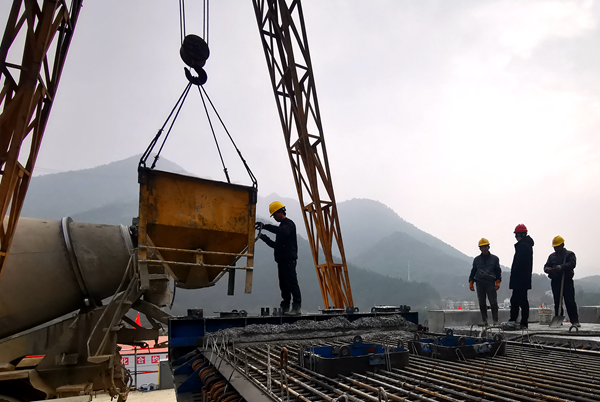 在全長8.18公里的施工線上,荊竹坑大橋、2#拌和站、2#預(yù)制梁場(chǎng)及鋼筋加工場(chǎng)等多個(gè)施工點(diǎn)同時(shí)多點(diǎn)作業(yè),多個(gè)工序同時(shí)推進(jìn)。其中,荊竹坑大橋左線2#橋橋臺(tái)施工不間斷;2#拌和站春節(jié)期間共完成砼量320方;2#預(yù)制梁場(chǎng)施工人員全部就地過年,加班加點(diǎn)作業(yè),保證每日澆筑3-4片預(yù)制橋梁板,春節(jié)期間完成近30片梁板,為全線橋梁梁板架設(shè)奠定有力基礎(chǔ)。