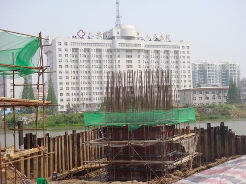 2009年4月21日下午,六安市淠望路大橋主墩5號右幅第一節(jié)(6米)墩身混凝土澆筑完成,標(biāo)志著淠望大橋主墩已順利出水,提前完成階段性目標(biāo)。大橋主墩墩身截面尺寸3.5米×6米,高11米,分兩次完成。