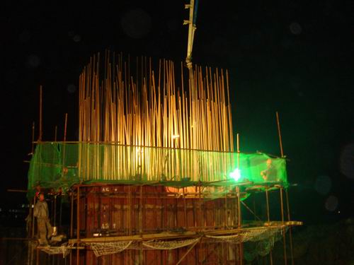 六安淠望路大橋至2月份開工以來,項目部邊施工邊籌備,克服前期陰雨天氣的不利因素,創(chuàng)造施工條件,確保主墩連續(xù)施工,引橋全面開工。在全體員工的努力下,大家不分晝夜,爭分奪秒搶時間,特別是主墩承臺施工,連續(xù)3晝夜施工不間斷,使承臺較原計劃提前6天完成,為主墩出水爭取了時間。目前全橋樁基已全部完成,引橋正在進(jìn)行立柱和系梁施工,同步準(zhǔn)備箱梁現(xiàn)澆的準(zhǔn)備工作,主橋墩身有序進(jìn)行。
