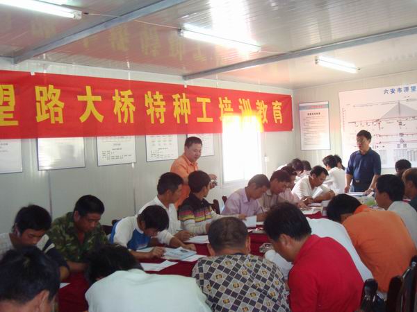 為進(jìn)一步加大項(xiàng)目部安全生產(chǎn)培訓(xùn)教育力度,切實(shí)提高特種作業(yè)人員的安全素質(zhì)和安全操作技能水平,確保在崗特種作業(yè)人員100%持證上崗。淠望路大橋項(xiàng)目部在公司人力資源部的指導(dǎo)和幫助下,以“安全生產(chǎn)月活動”為契機(jī),于6月3日至4日,組織了一期特種作業(yè)人員上崗培訓(xùn)和復(fù)審培訓(xùn)再教育活動。邀請了省安監(jiān)局特種作業(yè)培訓(xùn)中心的老師直接來到一線,對項(xiàng)目部及各下屬作業(yè)隊(duì)的電工、焊工、起重工等特種作業(yè)人員進(jìn)行安全技術(shù)培訓(xùn),培訓(xùn)的主要內(nèi)容有特種作業(yè)人員安全生產(chǎn)法律法規(guī)知識、安全生產(chǎn)管理知識、安全技術(shù)理論知識等。