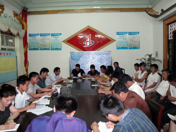 會議由項目經(jīng)理冷峰主持,項目部所有人員及各施工隊負責人共40余人參加了會議。項目經(jīng)理冷峰首先總結了項目前期生產(chǎn)的情況,重點分析了我部在業(yè)主的第二階段生產(chǎn)任務中所存在的問題,對業(yè)主下達的第三、四階段施工任務進行了通報,并就如何確保第三階段施工任務的完成對各部門做了具體要求。隨后,項目相關負責人及各職能部門就如何確保任務目標的實現(xiàn)落實了方案和措施。