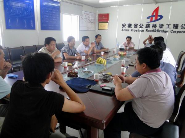 檢查組一行首先來到項目部召開會議聽取我部工作匯報,并進(jìn)行內(nèi)業(yè)資料檢查。項目經(jīng)理王遠(yuǎn)勝向檢查組一行匯報了我部抗擊715洪災(zāi)和災(zāi)后重建工作開展情況??偣顷痪臀也繕蛄菏┕べ|(zhì)量控制體系、流程和施工進(jìn)度進(jìn)行匯報。試驗室、質(zhì)檢部分別向檢查組匯報了我部試驗工作、質(zhì)量控制和內(nèi)業(yè)資料完善等情況。