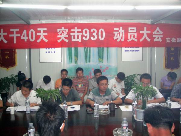 此次“大干40天,突擊930“會議是在項(xiàng)目辦“大干100天”活動的基礎(chǔ)上,緊緊圍繞“930”節(jié)點(diǎn)工期,精心組織、合理安排、及時(shí)總結(jié)糾偏的一次會議。此次會議統(tǒng)一了A7標(biāo)全體員工的思想認(rèn)識、明確了各自的目標(biāo)任務(wù)。