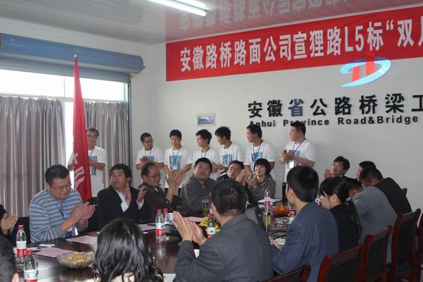 副總經(jīng)理陳智代表公司向全體參會人員宣讀了皖路橋路面辦〔2012〕5號文件——《關于開展宣貍改建工程L5標“雙月會戰(zhàn)”勞動競賽的通知》;路面公司工程部長王小杰、總經(jīng)濟師袁青嶺分別詳細闡述了活動的實施方案和具體獎勵措施。